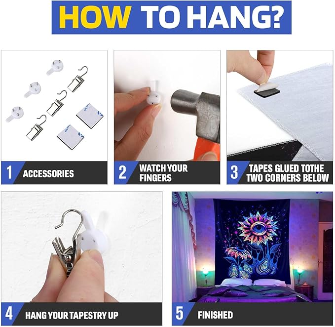 - ๐ Brighten Up Your Space: ADDWel blacklight tapestry adds a vibrant and glowing touch to any room. ADDWel tapestry is printed with a UV-reactive ink that creates a neon-like effect under blacklight. Perfect for parties, raves, and other events that require a fun and unique atmosphere.