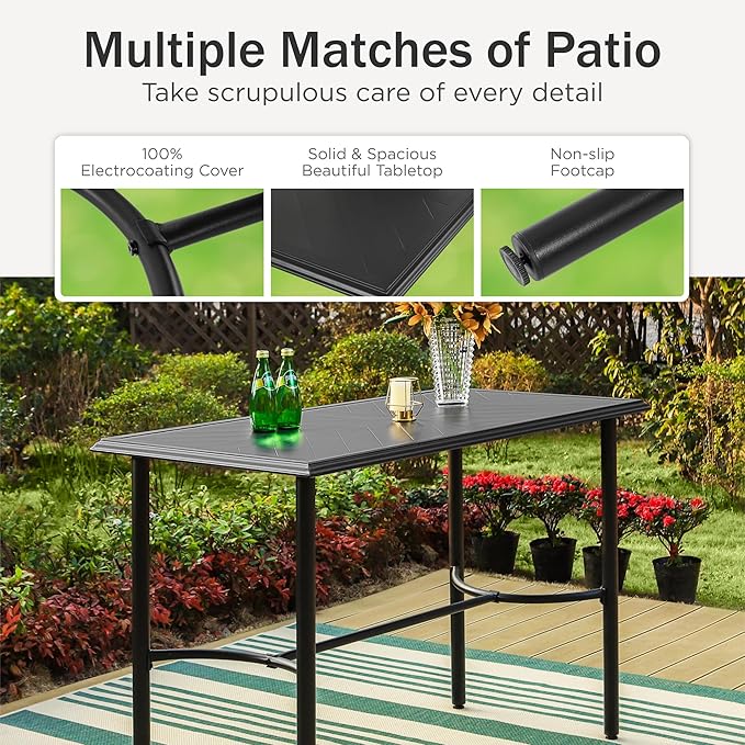 PHI VILLA Outdoor Patio Bar Table for 4-6, Counter Height Rectangle Bar Table with All Weather Metal Steel Frame Black for Outside, Yard, Garden and Deck