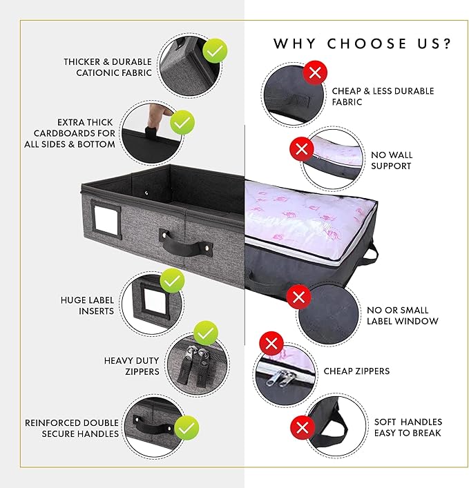 - ๐๐ฑ๐ญ๐ซ๐ ๐๐ก๐ข๐๐ค ๐๐ญ๐ฎ๐ซ๐๐ฒ ๐๐๐ซ๐๐๐จ๐๐ซ๐๐ฌ: Unlike most under bed storage box, Homelux Theory's under the bed storage containers come with extra thick cardboard on each side and bottom part to help hold their shapes and withstand frequent use & heavy loads. While other under box for clothes and shoe organizer under bed storage in the market usually has flimsy sides made of thin, lightweight materials, our timeless storage boxes for under bed are crafted for long-term durability and reliable performance.
