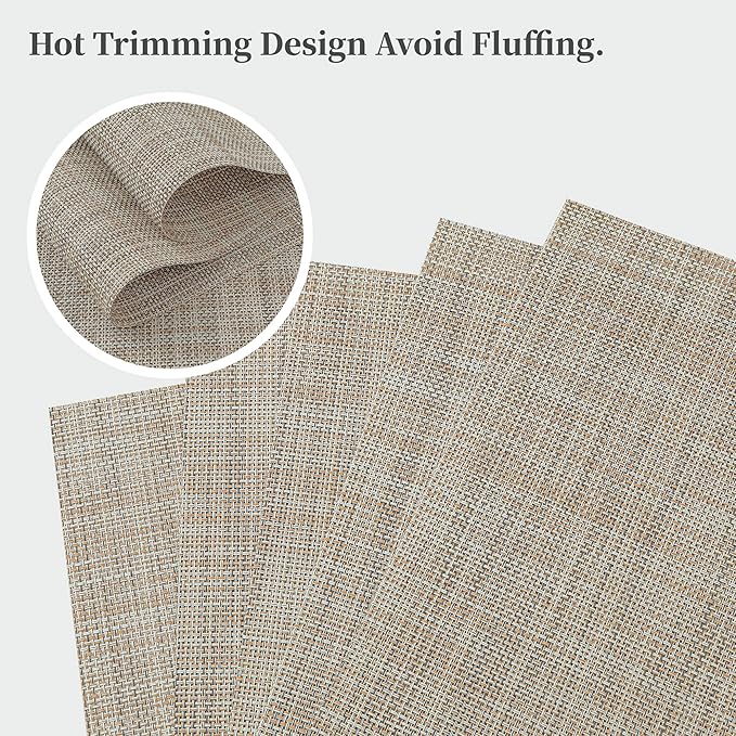 - Elegant and Practical Design: With a luxurious vinyl woven texture, precision cutting, and heat-trimmed edges, our double-sided placemats offer a sophisticated and practical solution. They provide a non-slip surface, resist fading, and are easy to clean, elevating your dining experience.