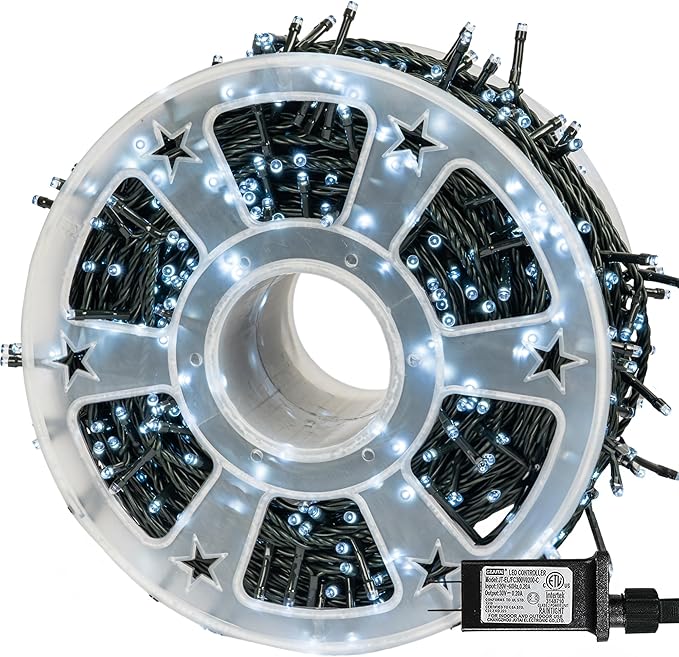 Dazzle Bright 164 FT 500 LED Christmas String Lights, Waterproof Green Wire String Lights with 8 Modes, Outdoor Christmas Decorations for Indoor Garden Party Yard Decor (White)