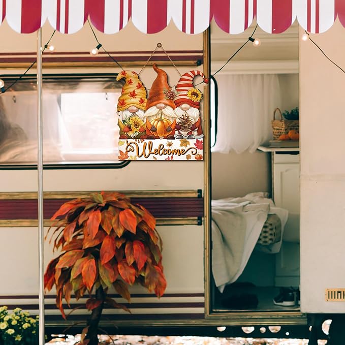 Boao Fall Welcome Sign Gnome Hanging Door Decor Thanksgiving Wooden Sign Autumn Door Decorations Pumpkin Maple Leaves Hanger for Outdoor Farmhouse Porch