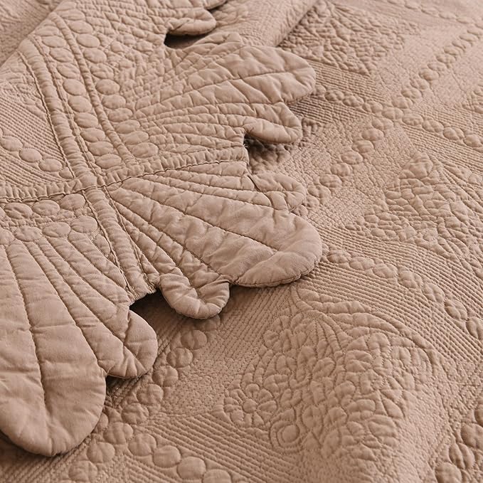 MarCielo 3-Piece 100% Cotton Oversized Bedspread Lightweight Quilt Coverlet Embroidery Farmhouse Bedding Set (TK Pale Taupe Camel, Oversized Queen (100"x106"))
