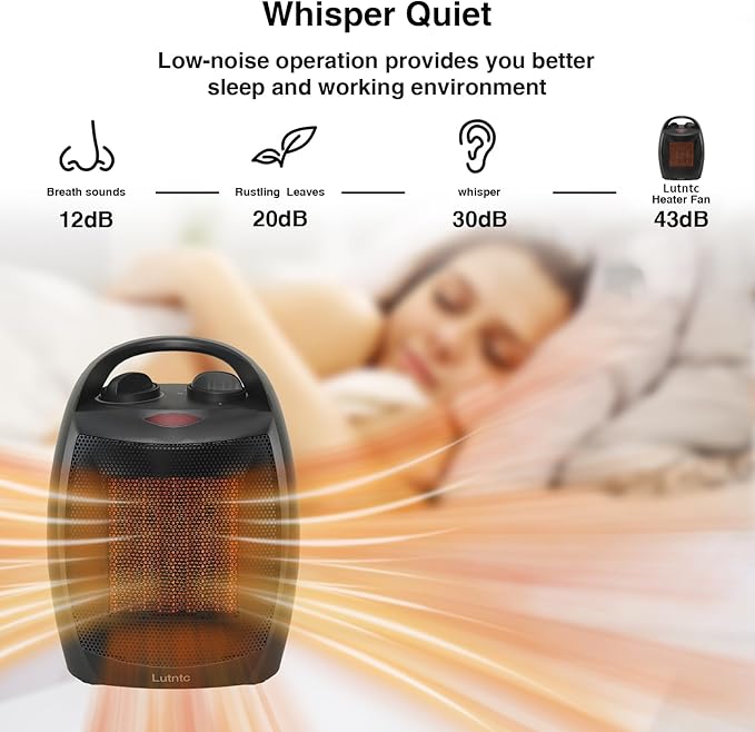Small Portable Space Heater for Indoor Use - Lutntc 1500W Safe and Quiet Ceramic electric Heater Fan, Heat Up 200 Square Feet for Room, Office, Desk