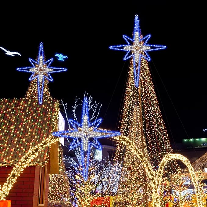 - Reliable Iron Frame: the outside Christmas star adopts quality iron frame and bright LED beads, a stunning design that adds a touch of elegance to most spaces, bringing a different kind of feeling to the family