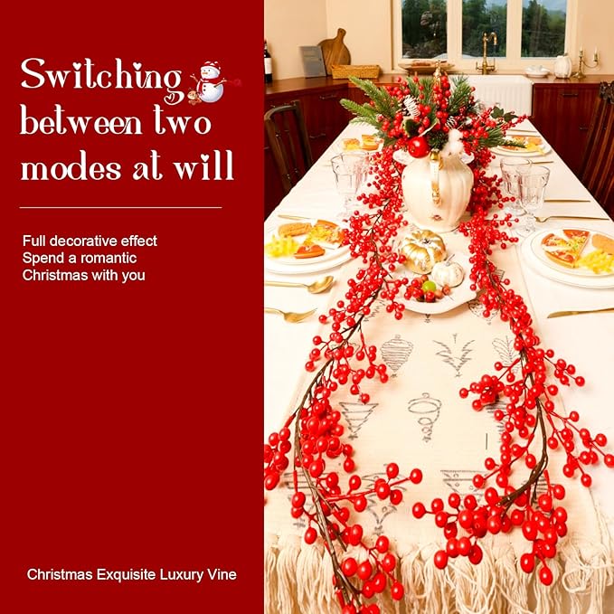 - PREMIUM & DURABLE: The red berry garland is handmade with red foam berries and no odor flexible plastic stem, can be shaped freely to meet any decorations. Inside the berries are foam, please do not pinch too hard or tread with your foot in case of break.