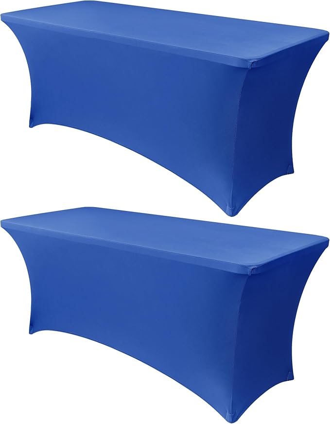 Obstal 6ft Stretch Spandex Table Cover for Standard Folding Tables - 2 Pack Universal Rectangular Fitted Tablecloth Protector for Wedding, Banquet and Party, 72L x 30W x 30H Inches, Royal Blue, 2pc
