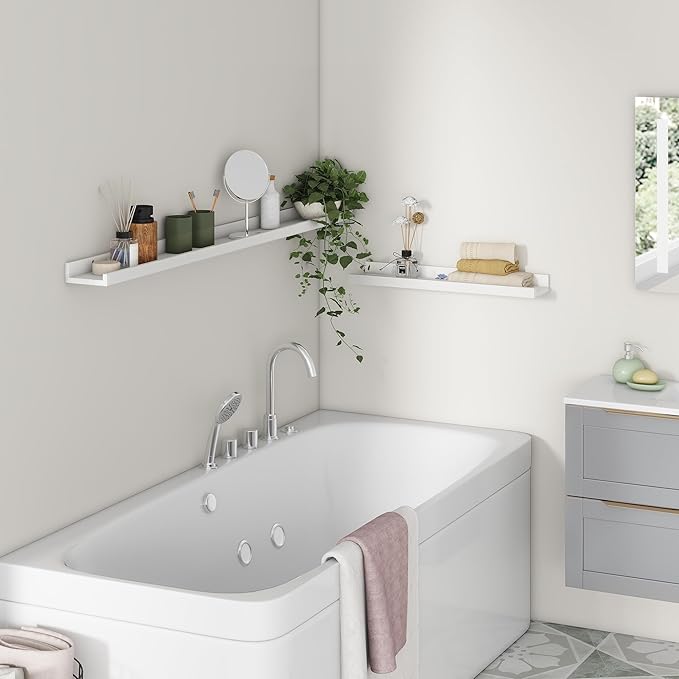 Picture Ledge Shelf for Wall, 36 inch Solid Pine Wood Nursery Book Shelves 2 Packs, Floating Ledge Shelves for Kids' Room Bedroom Bathroom Living Room Photo Frames Office Nursey Wall Decor, White