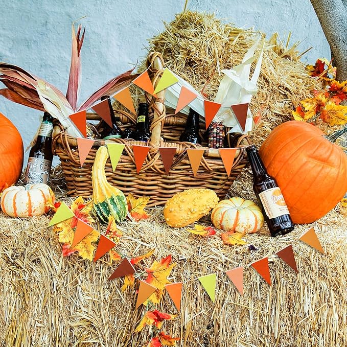 - Fall Pennant Banner: you will receive 5 pieces of orange pennant banners completed with 6 different colors of small triangle flags, and each pennant banner consists of 24 pennants, enough quantity can meet your basic decoration needs