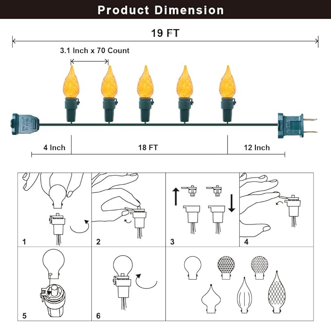 - End-to-End Connectable: C5 LED Fairy lights come with end to end connector, which is connectable up to 36 sets , expandable to a longer length for any project big or small requirement. UL 22# green wire is the standard for outdoor Christmas lights, reducing wire twisting, reducing tangles. Green wire blends with branches.