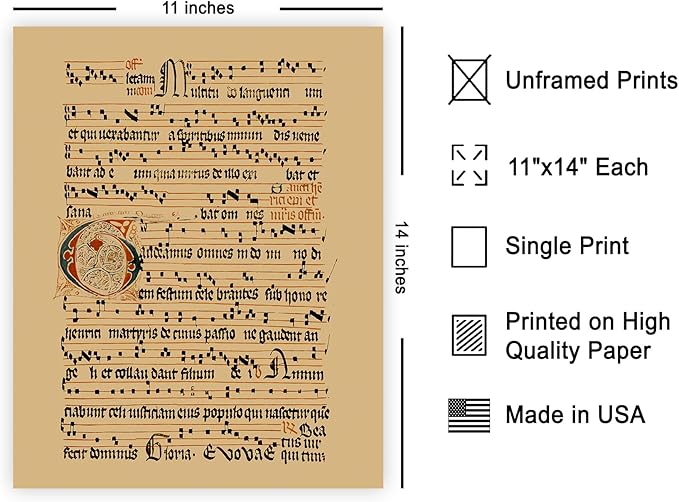 Poster Master Vintage Graduale Aboense Poster - Retro Gregorian Chant Manuscript Print - Hymnal Art - Gift for Men & Women - Great Wall Decor for Dorm, Living Room or Bedroom - 11x14 UNFRAMED Wall Art