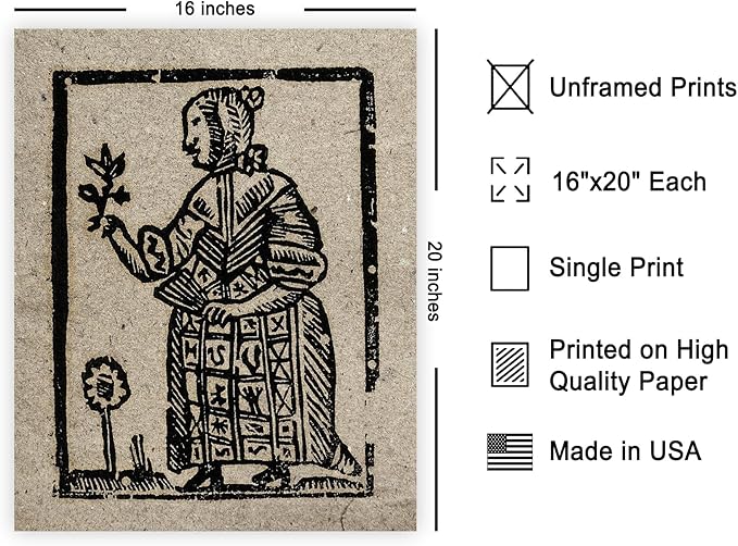 Poster Master Vintage Woodcut Poster - Retro Medieval Print - 16x20 UNFRAMED Wall Art - Gift for Gothic, Horror Fan - Witch Holding a Plant, Magic, Spell, Herbalist - Wall Decor for Bedroom, Dorm