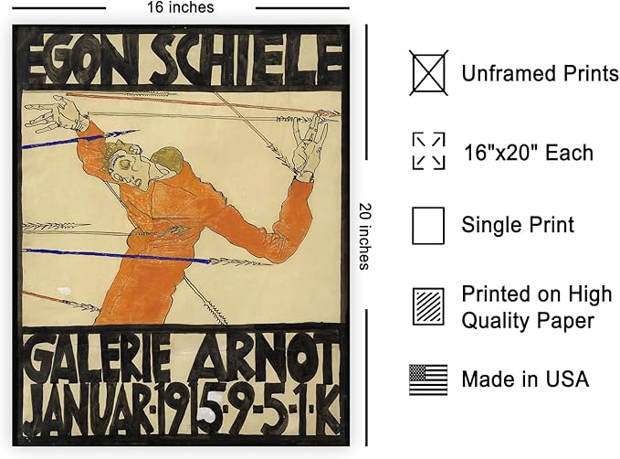 Poster Master Vintage Painting Poster - Retro Expressionism Print - Self Portrait as the Martyred St Sebastian - 16x20 UNFRAMED Wall Art - Gift for Artist, Friend - Wall Decor for Home, Office