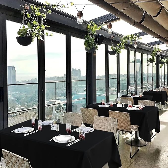 sancua 6 Pack Black Tablecloth 60 x 84 Inch, Rectangle Table Cloth for 4ft Tables - Stain and Wrinkle Resistant Washable Polyester Table Cover for Dining Wedding Banquet Party Buffet Restaurant