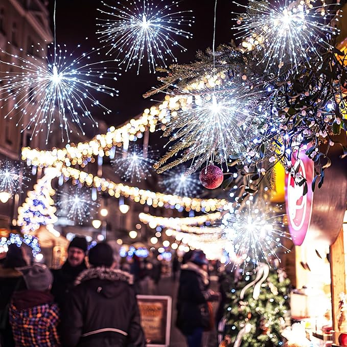- Outdoor Indoor Christmas Decoration Lights: Copper sparklers lights can be easily bent and made into any shapes.The hanging fairy lights are IP65 waterproof, the battery case is IP65 waterproof, with hooks on it, perfect decorations of garden,patio, corridors, Christmas trees hanging lights, living room, bedroom, tent, wedding, parties, etc.Perfect twinkling fairy lights, outdoor string lights,Christmas lights outdoor.
