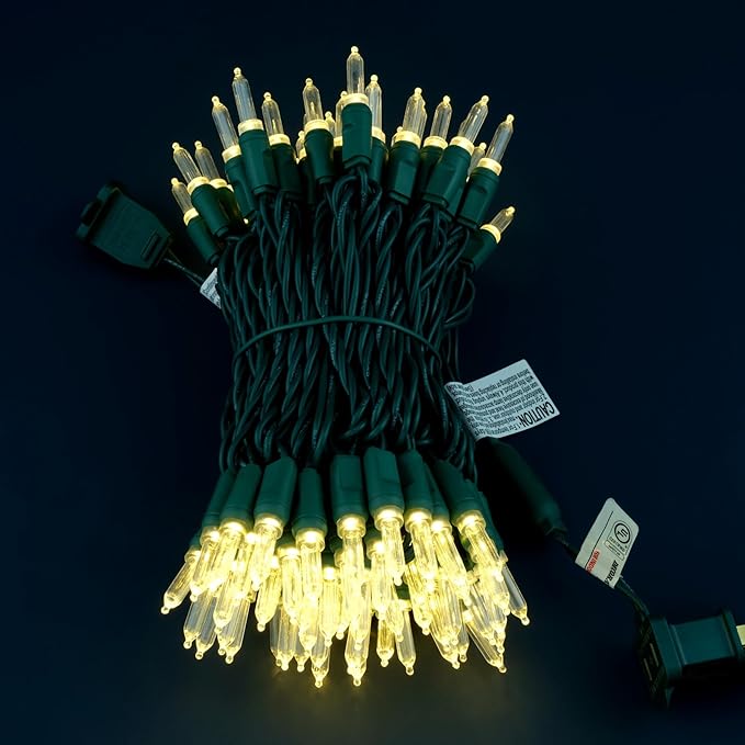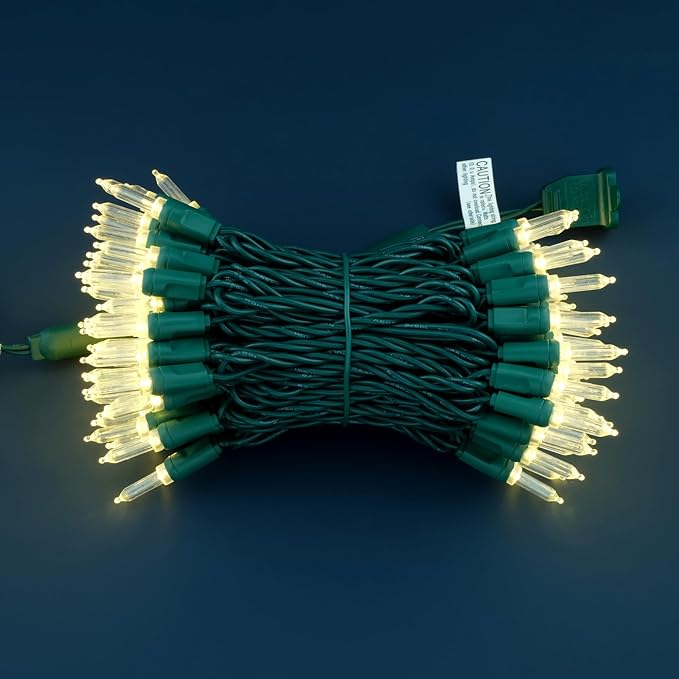 100 Warm White One-Piece LED Christmas Lights, 33 ft Green Cord High Waterproof UL Certified T5 Outdoor String Lights (Warm White)
