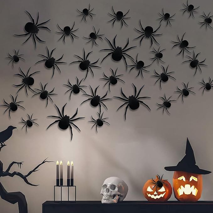 - 【FUN HALLOWEEN DECORATION】Our 3D black spider wall decoration, the color and shape are perfect for Halloween scenes. Stick these spider stickers on cabinets, bookshelves, walls, doors and windows with your kids and arrange them as you like. It can be applied to Halloween, New Year's Eve parties, ghost festivals, etc., bringing some spooky atmosphere to the Halloween party!