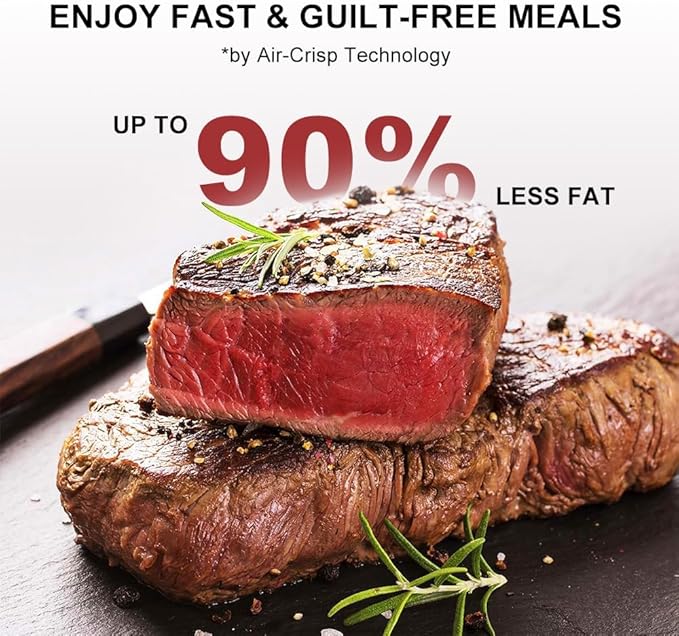 - HEALTHIEST WAY TO FRY: Advanced AIR-CRISP TECHNOLOGY removes up to 90% of fat, and allows airflow for a perfect golden finish and crispy, tender results every time! Now enjoy guilt-free food and all of the flavor.