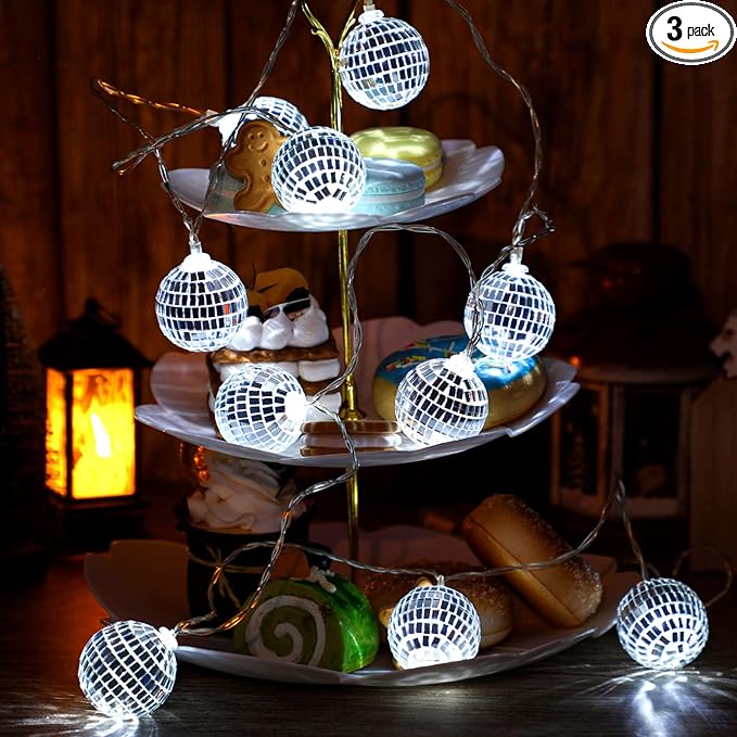 - Package Content: you will receive 3 strands of disco ball string lights, each strand has 10 colored LED lights; These mirrored disco balls are necessary for your Christmas party, bring you much happiness