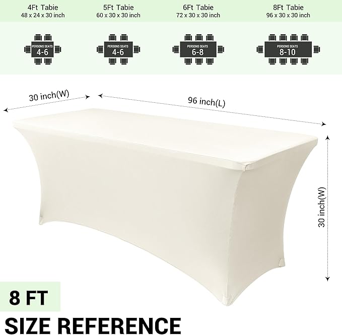 Obstal 8Ft Stretch Spandex Table Cover for Standard Folding Tables - 2 Pack Universal Rectangular Fitted Tablecloth for Party, Banquet, Events, Trade Show (Cream, 96L x 30W x 30H Inches)