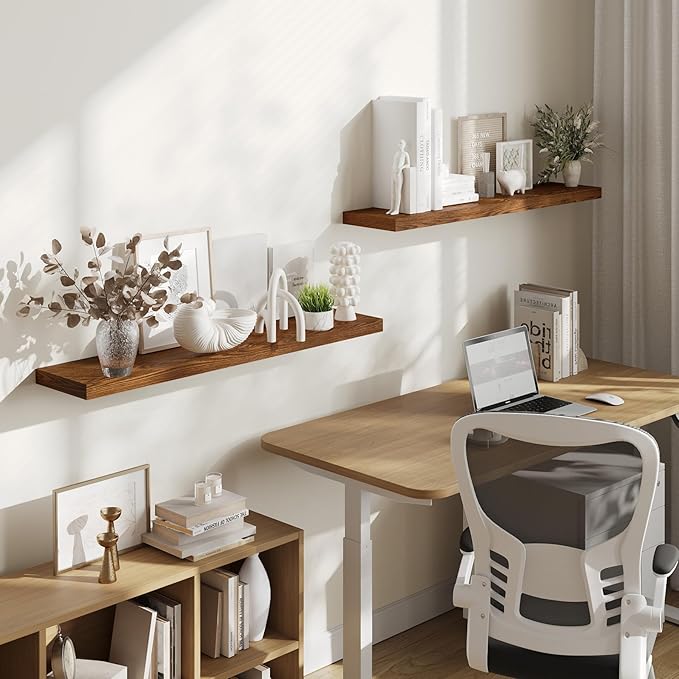 - GREAT FOR ANY ROOM: Our wood floating shelves are made of MDF with a frosted surface texture for a mordern feel that blends perfectly into a variety of different scenes; Having this large floating shelf not only for its decoration effect, but also for its high practicality; It can be used for organizing all household rooms, such as bedroom, living room, study, toilet, cloakroom, even kitchen and warehouse