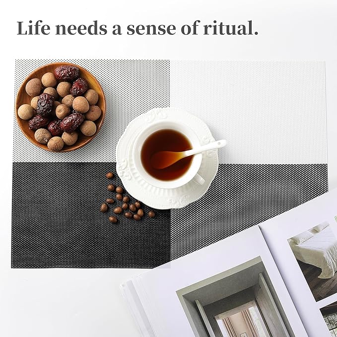 - Elegant and Practical Design: With a luxurious vinyl woven texture, precision cutting, and heat-trimmed edges, our double-sided placemats offer a sophisticated and practical solution. They provide a non-slip surface, resist fading, and are easy to clean, elevating your dining experience.