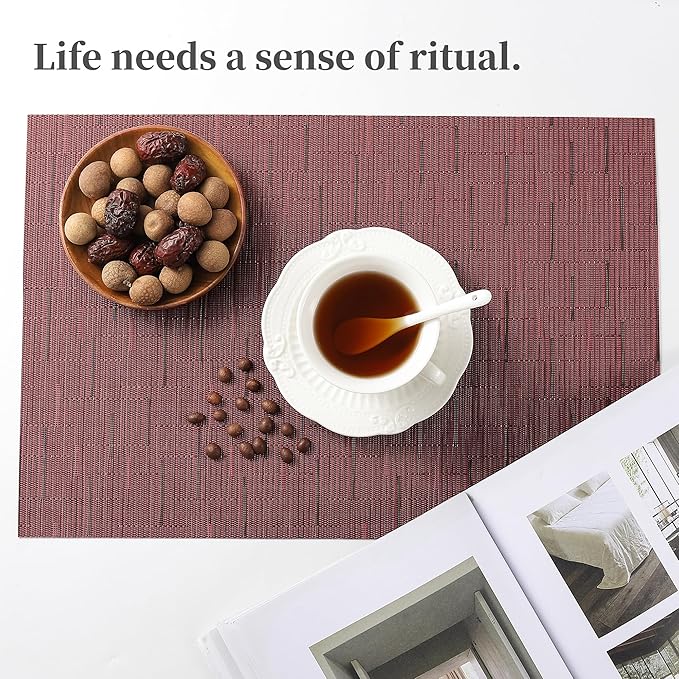 Leetaltree Burgundy Placemats Set of 12 - Heat Resistant Non-Slip Place mats for Dining Table, Washable Durable PVC Vinyl Woven Table Mats(Burgundy, 12)