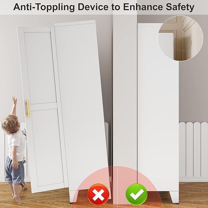 - Multiple Uses: The metal storage cabinet perfect for storing towels, soap, cleaning supplies and cleaning cloths in bathroom; storing food, tableware in the kitchen; storing clothes, bags and bedding in the bedroom; storing games, puzzles, books and crafts in the living room. The white cabinet can be used in kitchen, laundry room, bathroom, garage, utility room, bedroom, living room, office, dinning room, entryway etc