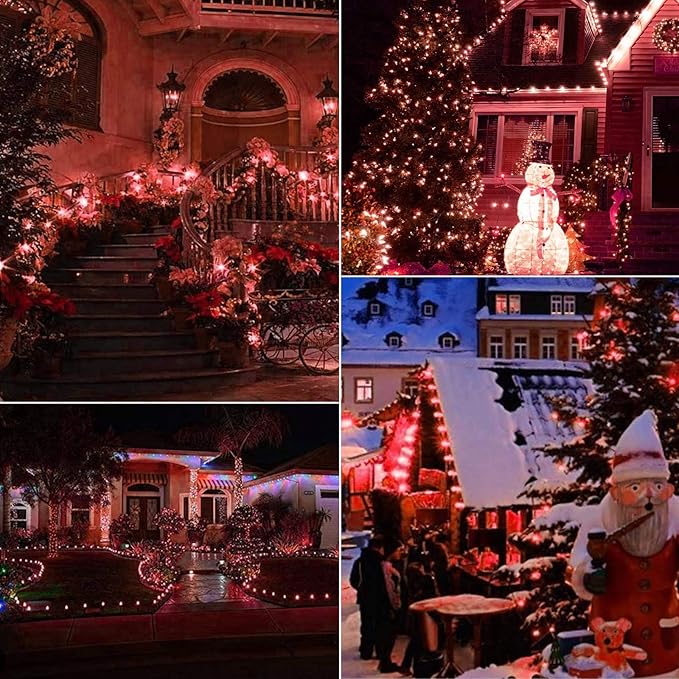 - End-to-End Connectable: Each Christmas light has an end-to-end connector, and you can connect up to 100 sets of these strings end-to-end, freely connecting according to your needs. Hang these fairy lights from your roof, porch, or fence, or wrap them around trees to create a romantic holiday atmosphere and enjoy a happy holiday season with your family.