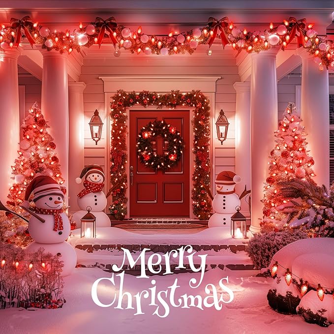 - Waterproof Outdoor Christmas Lights: IP44 waterproof, the popular Christmas C9 string lights can withstand all kinds of weather! Made from durable polycarbonate materials, these faceted C9 bulbs offer vibrant and long-lasting illumination without fading, cracking, or chipping. Suitable for outdoor and indoor decorations. Note: Please prevent the plug from being immersed in water.