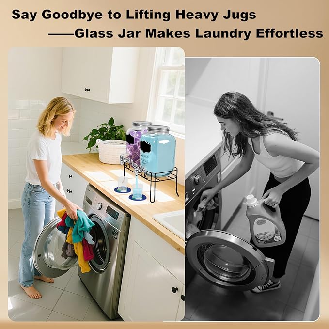 - Capacity and Convenience: Our 0.9-gallon glass jar for laundry detergent minimizes refills, saving you time. The PP spigot allows smooth dispensing. Includes two measuring cups for accurate detergent usage, simplifying laundry tasks.
