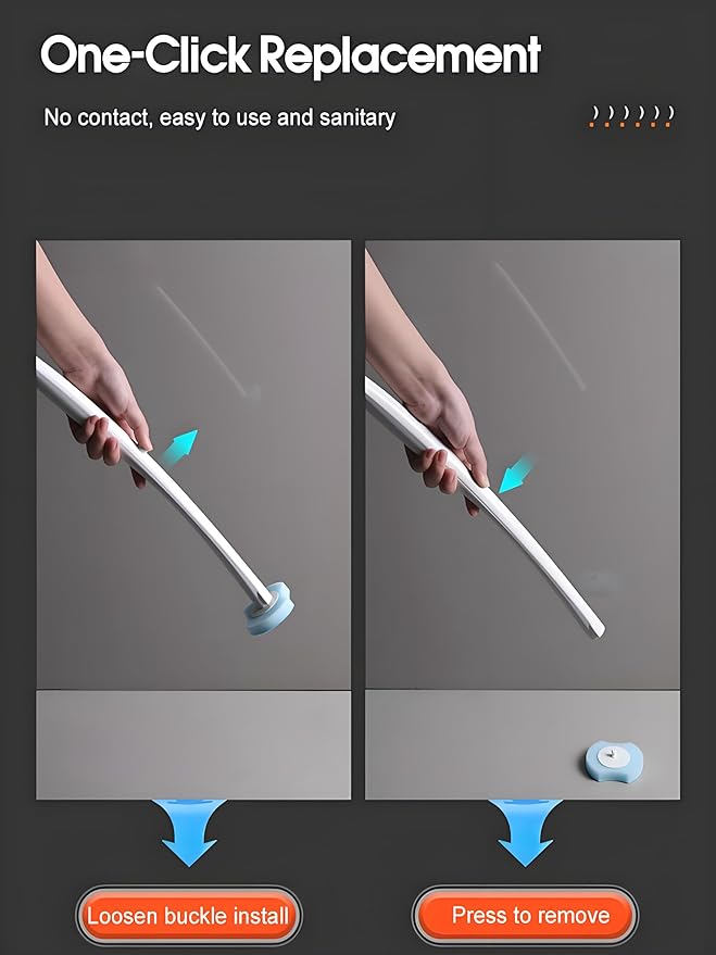 - Disposable Toilet Brush Refills with Cleaner--This is a very convenient disposable toilet brush that can quickly clean various toilets and quickly replace the brush head without direct contact. One click to replace the brush head, and one click to discard unused brush heads. These brush heads comes with a cleaning agent, which can effectively clean various dirt. After using this brush, you will find that your toilet like new and fragrance.