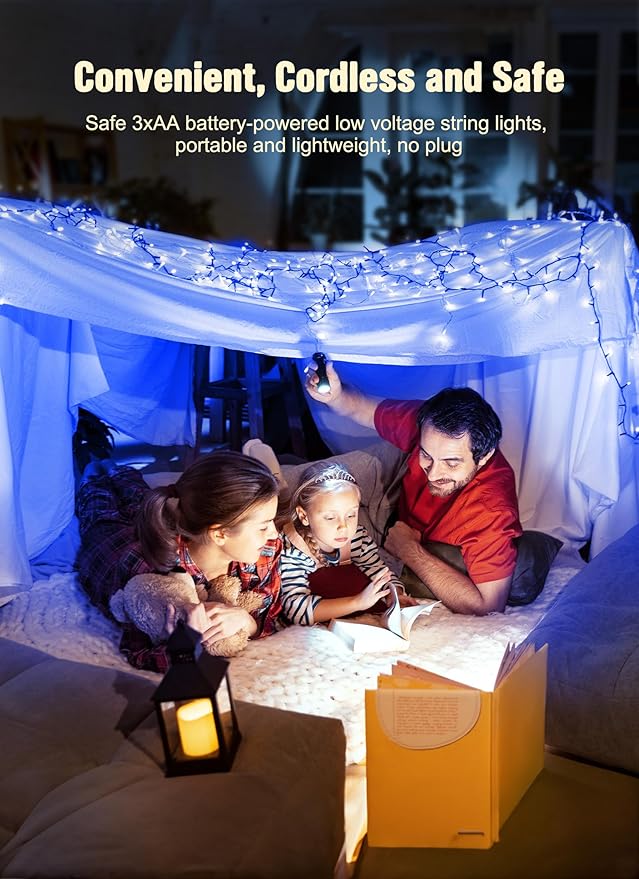 - Easy to Shape : The flexible cord of Christmas lights indoor can be easily wrapped or twisted on trees, flowers or the banister etc. It is easy to install with a cable tie or cup hook, fix it or place it, position or hang it on anywhere desired indoor.Newest clear and small battery box that is easy to hide requires 3 AA batteries (not Included)