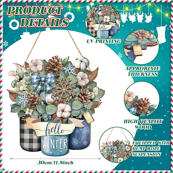 - Vibrant Winter Style: package comes with 1 Christmas front door sign; It's the ideal way to add a touch of cozy Christmas style to any entryway