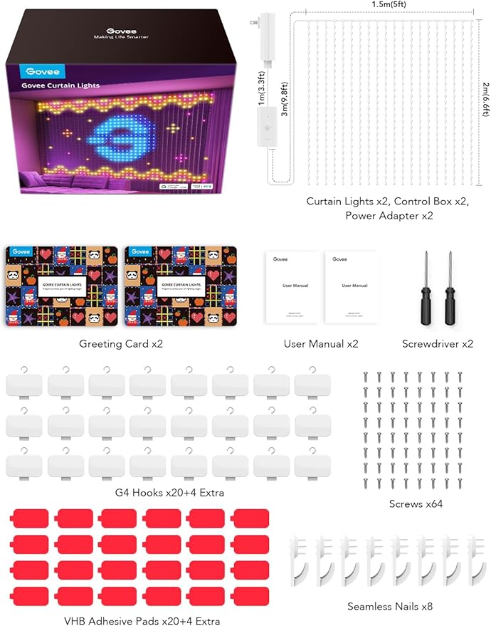 - DIY Your Canvas: With 5 canvas layers, add more dimension to your lighting effects with Govee Wi-Fi LED Curtain Lights. You can also upload pictures and GIFs for a fun animated decoration to complete your space. Note: GIF function only works with one set.