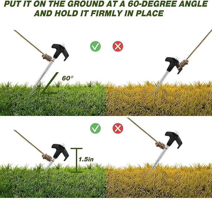 - Strong and Secure: our inflatable stakes heavy duty offer enough strength under windy conditions and are suitable for use in grass, dirt, harder soils and sand; They are important for taking care of your outdoor equipment; Pointed items are included, it is recommended to wear tool gloves to avoid injury when using, and please keep it away from kids