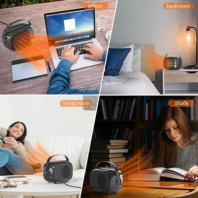 - 【CERAMIC SPACE HEARER】 Advanced PTC ceramic heating elements provide faster and more efficient heating than traditional heaters.Small desk heater can rapid heating within 3s.Small and powerful this is the perfect heater for home,bedroom,office and under desk use