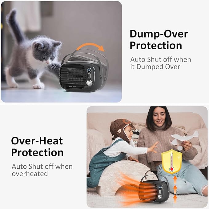 - 【MATERIAL】 Coolfor desk heater is made of ABS material,which is HIGH TEMPERATURE RESISTANT FLAME RETARDANT MATERIAL.It won’t overheat even if left on for an extended amount of time