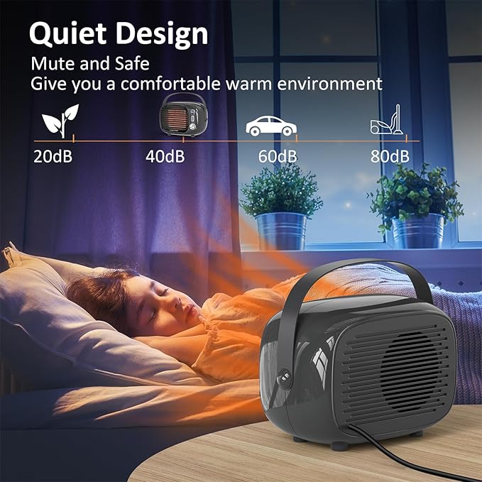 - 【ADJUSTABLE POWER】The small space heater with an adjustable temperature control,you can choose the comfortable temperature as you need
