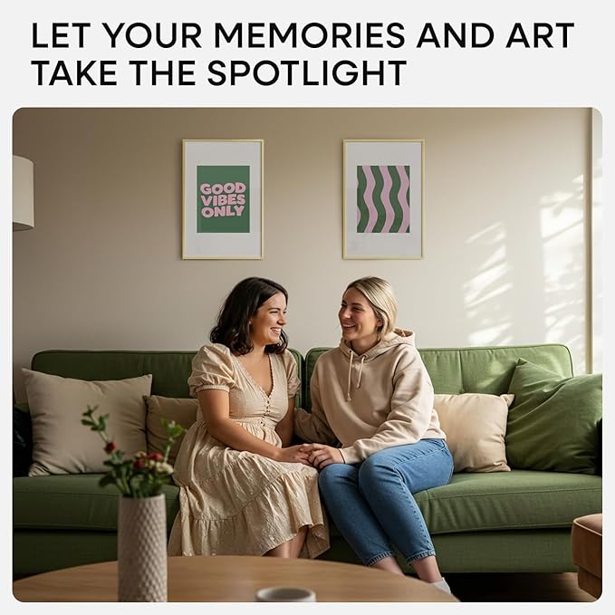 - SUBTLE GLOW. SIMPLE FORM. This frame’s polished champagne gold hue adds just enough shine to catch the eye. Clean lines and a minimalist build keep the look modern and uncluttered.