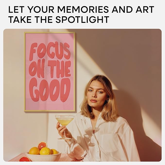 - SUBTLE GLOW. SIMPLE FORM. This frame’s polished champagne gold hue adds just enough shine to catch the eye. Clean lines and a minimalist build keep the look modern and uncluttered.