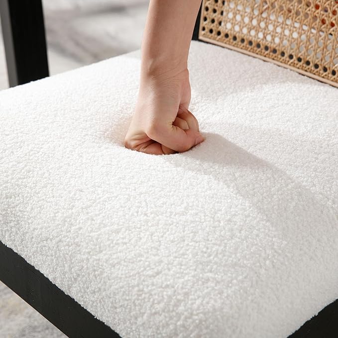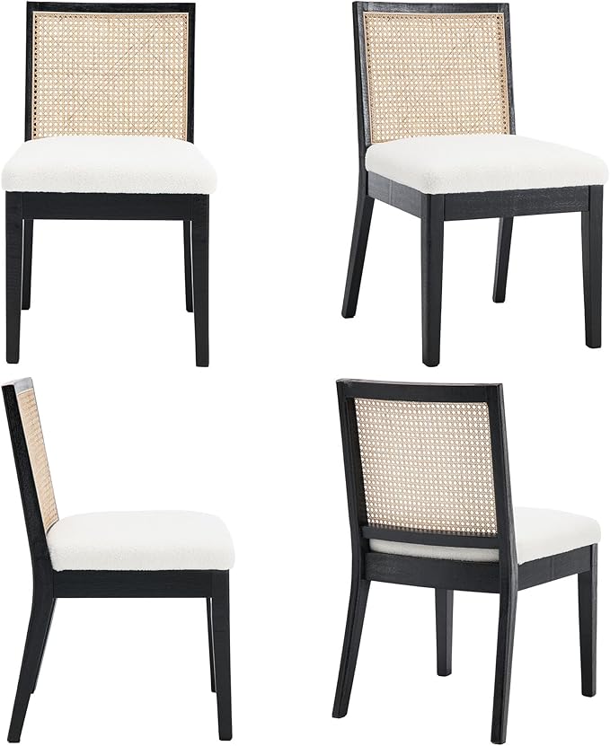 VESCASA Upholstered Dining Chairs with Square Rattan Back, Armless Padded Sherpa Fleece Cushion Dining Chairs with Wood Legs for Dining Room, Kitchen, Set of 4, Black Frame