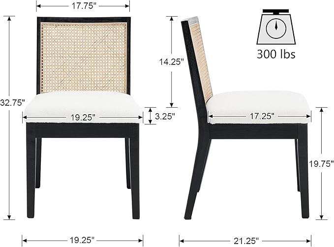 - UPHOLSTERED SEAT These padded dining chairs have a 19.25" W upholstered seat cushion and a 14.25" H x 17.75" W square rattan back, the soft cushion seat allows you to sit more comfortably