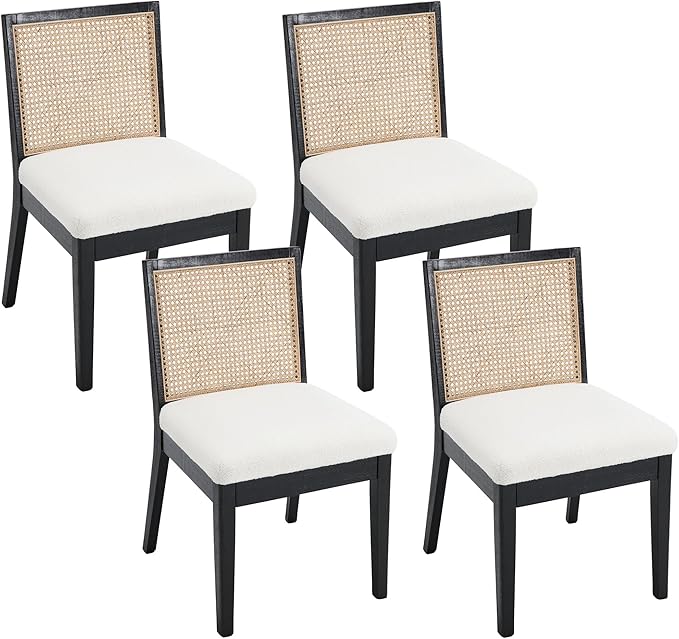 - MODERN DESIGN These modern dining chairs feature a padded cushioned seat, a square rattan back, and black wood legs. Simple but elegant, they will be a great addition to your home