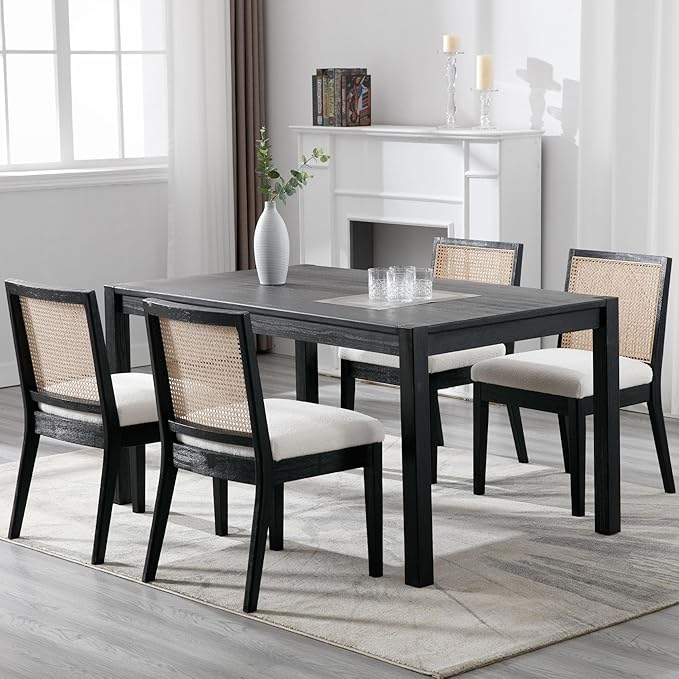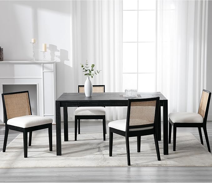 - MODERN DESIGN These modern dining chairs feature a padded cushioned seat, a square rattan back, and black wood legs. Simple but elegant, they will be a great addition to your home