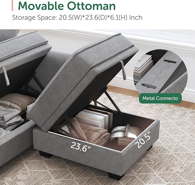 - Hidden Storage Space: The storage space under each seat of the sectional sofa can not only store children's toys, but also store blankets and remote controls, making the room look neat and clean