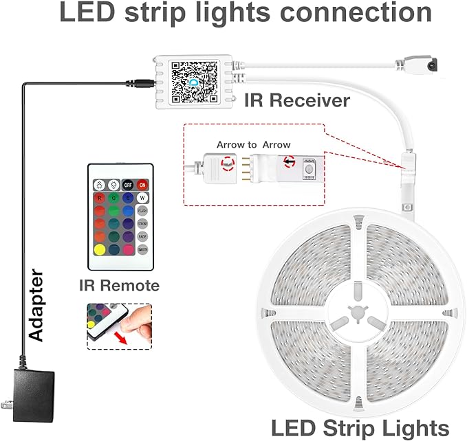 - Smart app and ir remote control: The 300 feet led strip lights support both app and 24 keys ir remote for control, different modes can be chosen, like flashing, quick, jump, fade, etc. You can freely choose to control 16 million colors