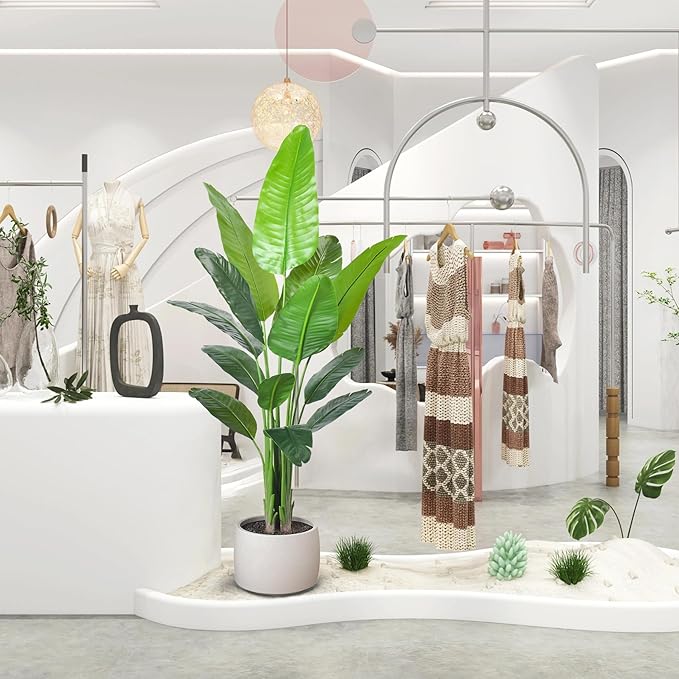 - 【Three Size Available】Our artificial bird of paradise tree have three size available;4ft、5ft&6ft,6ft faux plants with 13pcs real touch leaves, 5ft faux plants with 10pcs real touch leaves ,4Ft faux plants with 9pcs leaves.you can choose different sizes of fake floor plants to decorate your house.