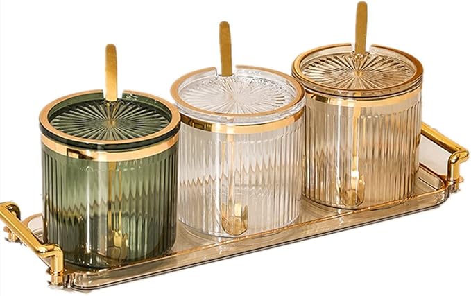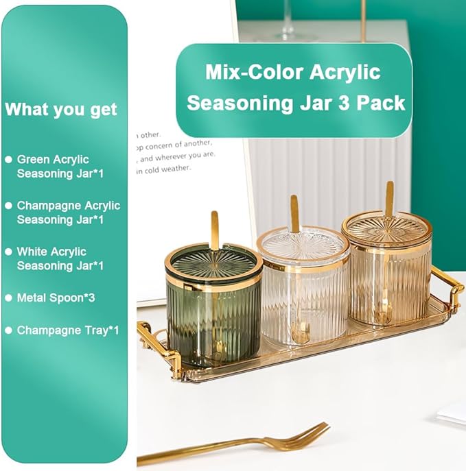 - ▲▲【Material】: Transparent thickened acrylic condiment container, made of PP plastic, equipped with 3 metal spoons and a practical tray with a handle, sturdy and corrosion-resistant, it can be effectively stored while decorating home life, adding color