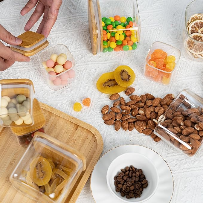 - [Transparent jar]- Transparent square glass containers make your items visible, allowing you to clearly see the contents of the glass storage jar and the remaining stock, and then you can easily replenish the food that is about to run out.